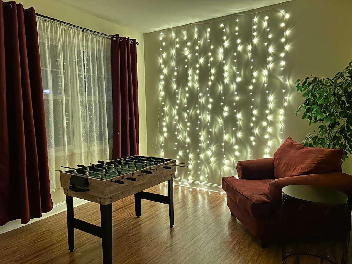 2 fabulous rooms to choose from upstairs in our beautiful, new home near Downtown Angier, NC. 1 room per booking. There is an office and a bonus room featuring workout equipment (treadmill, BoFlex, rowing, inversion, weights), TV, Xbox, fridge, microwave, couch, and a coffee table. Each room has a dresser, closet, bed, and a window. 1 room has a private bathroom with a sink, toilet, and a shower, while the other has a dedicated bathroom in the hallway with a tub, shower, two sinks, and a toilet.