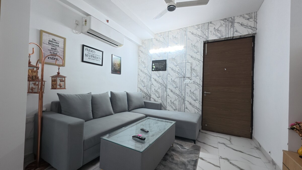 Apartemen 2 Bhk pertama yang memenuhi setiap persyaratan ✨ - 2 Kamar Tidur ( Kamar tidur utama, kamar tidur kedua) - 2 tempat tidur berukuran king - Area duduk yang luas dengan pengaturan tempat duduk yang nyaman - 2 kamar mandi ( 1 di masing - masing kamar tidur) - Dapur kecil (dengan semua perlengkapan dasar memasak yang tersedia dan fasilitas yang tersedia, ini adalah tempat yang sempurna untuk menyiapkan makanan favorit Anda) - Area Balkon Bersama yang terhubung dengan apartemen yang bisa menjadi ruang sempurna untuk berjalan - jalan di malam hari Buku Sekarang!!