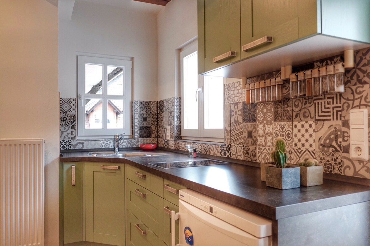 Selamat datang di rumah sementara Anda yang jauh dari rumah: Apartemen loteng kami yang berukuran sekitar 50 m² dan dilengkapi perabot lengkap ini tenang namun berlokasi di distrik populer Im Schmelzerwald di St. Ingbert. Ruang tamu dan ruang makan terbuka ini cerah dan ramah, menawarkan semua yang Anda butuhkan untuk masa inap yang nyaman. Di area tidur terdapat tempat tidur 140x200 cm yang nyaman untuk bersantai di malam hari. Tentu saja, Wi-Fi dan TV tersedia.