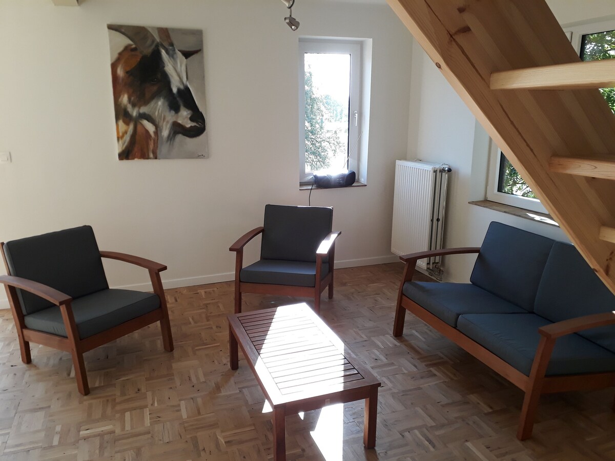 Rumah liburan yang berdiri sendiri seluas 70m2 dengan 2 kamar tidur, 2 kamar mandi, dapur, ruang duduk, teras dengan pemandangan indah ke arah ladang dan taman pribadi. Di ruang tamu terdapat sofa bed sehingga kami dapat menerima hingga 5 orang. Pondok ini terletak di lokasi bekas rumah pastor. Ada rumah liburan kedua di lokasi yang sama. Tergantung ketersediaan, rumah liburan ini juga dapat disewa bersama. Kemudian, tempat dapat ditawarkan untuk kelompok hingga 9 orang.