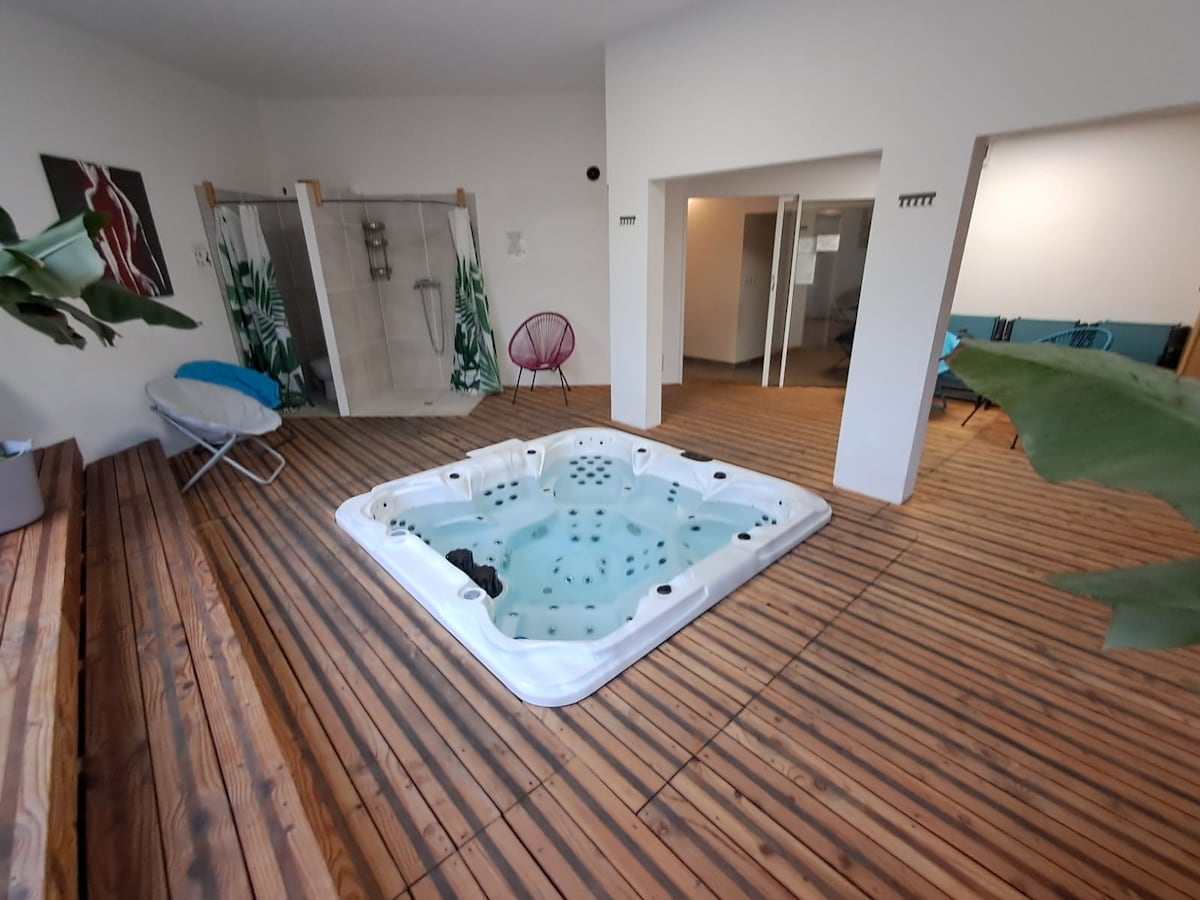 - Terletak di hyper center "En Apparte"adalah properti wisata berperabot bintang 3 dengan Sauna Inframerah, Tempat Tidur King Size, dan Pancuran Hydromassage. - Sauna (Chromotherapy, Bluethooth, USB,Radio) - Tempat tidur king dengan kasur Hybrid "EMMA ". USB, USB/c , LED built - in - Ruang kerja/Makanan dengan meja yang dapat dilepas. - Area sarapan/Kulkas Dapur, Oven/Microwave , "L 'atau" pembuat kopi ", Ketel, kompor - Smart TV - Filter tanpa jendela - Akomodasi bebas asap rokok