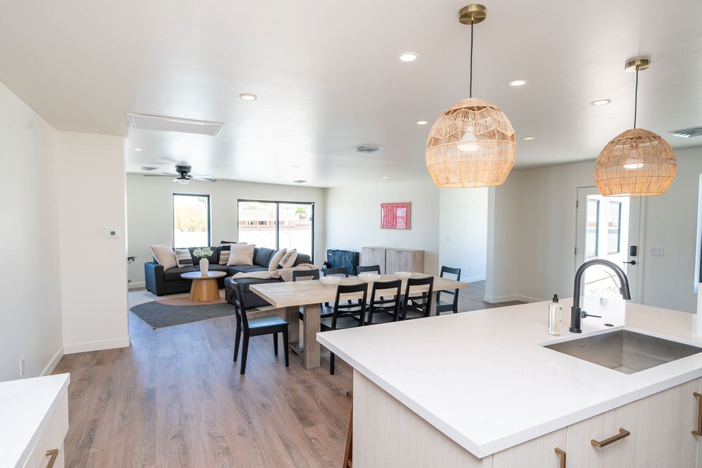 Have fun with the whole family at this brand new stylish place with an ultra modern style. Designed and equipped by Havasleeps that has been serving Havasu guests for years. This is our 3rd vacation home and they are all so unique! Convertible dining for pool table, ping pong or dinner. Sorry we don’t have a pool. Parking and more parking! Mega garage with 14' tall door & 44' floor space; 24' deep double car garage; 40' wide by 40' deep paver driveway - and there's also 80’ side parking