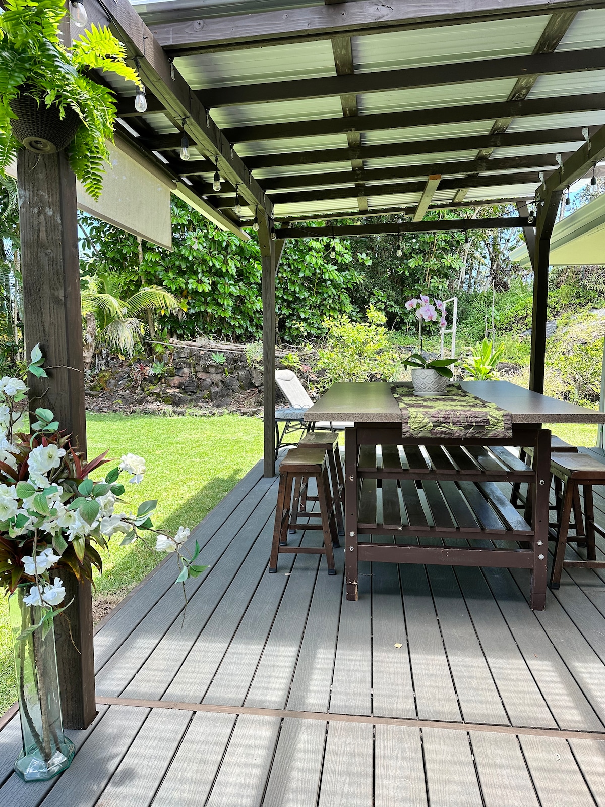 Bunglow kecil yang unik di Pulau Besar Hawaii. Aktivitas di sekitar Gunung berapi Melihat Lava Pantai Pasir Hitam Rainbow Falls Alaka Falls State Park Hilo Farmers Market Taman dan Kebun Liliuokalni Imiloa Astronomy Center Pulau Kelapa Jalan Panorama Pesisir Hamakua Kebun Binatang Hutan Hujan Pana Ewa Kebun Raya Sepeda Atv Berkemah Tur Helikopter Lintas alam Snorkeling Ziplining Berselancar Rumah ini berada di hutan hujan, tokek adalah bagian dari pengalaman 🦎Anda akan mendengar suara katak Coqui di malam hari.