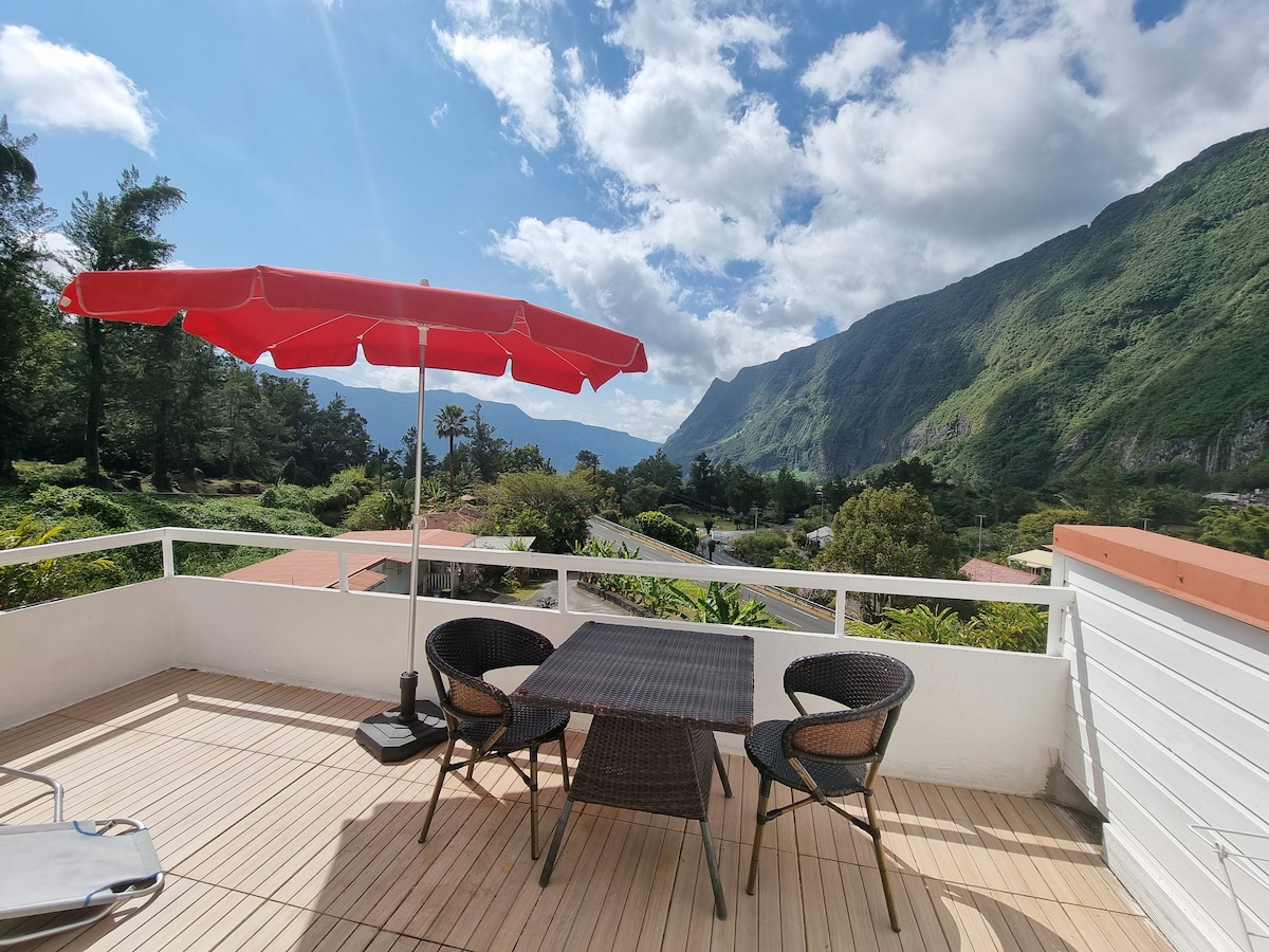 Rumah creole yang telah direnovasi dengan indah cerah, bersih, tenang tanpa vis - à - vis 100m2 dikelilingi oleh taman tertutup yang indah di tepi Natural Park yang terdaftar sebagai Situs Warisan Dunia UNESCO, pemandangan pegunungan yang indah, menghadap jalur hiking Belouve/Trou de fer/Piton des Neiges, internet WiFi Fiberre dan telepon 4G resepsionis yang baik, 10 menit berjalan kaki dari pusat desa, diklasifikasikan di antara desa - desa terindah di Prancis, tempat Anda dapat menemukan Kantor Turis, restoran, toko roti, dan toko lainnya
