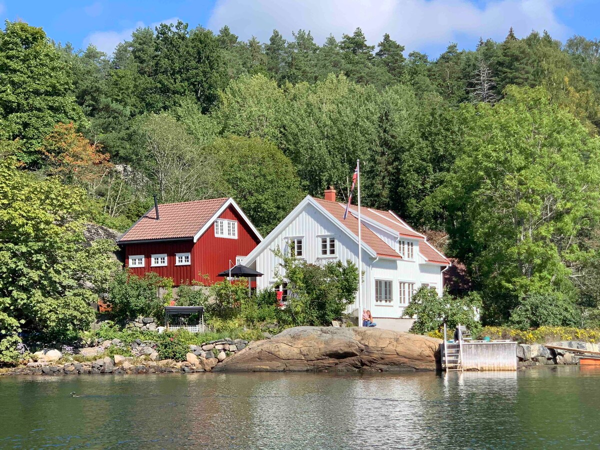 Cozy Guesthouse. Parkir gratis. Akses laut, 2 lantai, dekat pusat Kragerø. Bakstebua adalah guesthouse yang telah digunakan sebagai toko roti. Tempat ini memiliki akses pribadi dan jalur kecil menuju laut. Di sini Anda dapat menggunakan tempat pribadi kami untuk berenang dan bersantai. Di lantai atas ada apartemen dengan dapur modern, pancuran, dan toilet. Ada tempat tidur ukuran penuh, dan loteng kecil tempat 2 anak bisa tidur. Di lantai dasar, dengan akses terpisah, ada dapur sederhana, kamar mandi, dan sofa - bed.