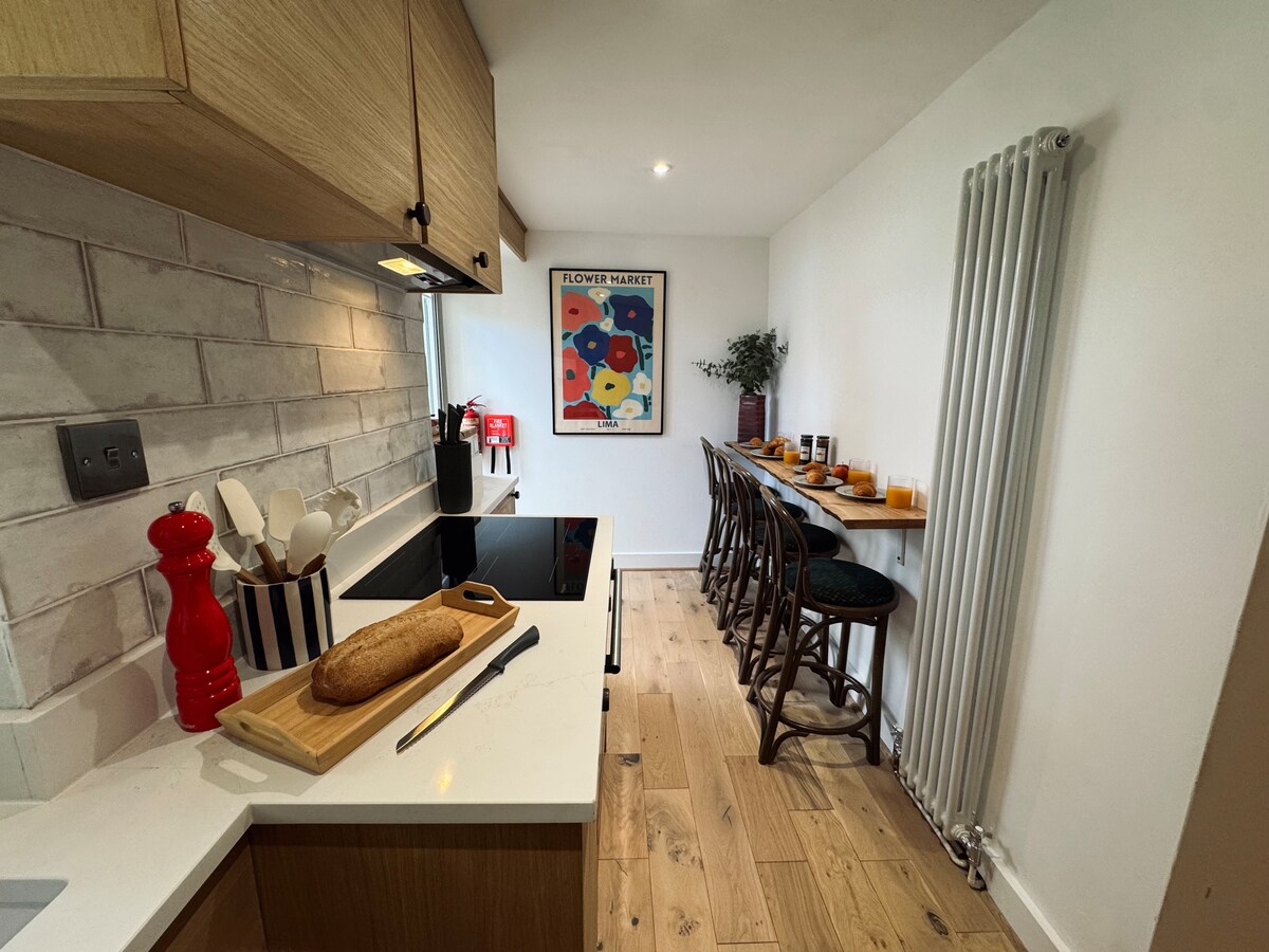 Pengalaman Katering Mandiri Unik! Menginaplah di pondok pribadi mewah Anda sendiri Home Home, yang terhubung dengan properti kami yang dibangun dari tahun 1560 di seberang alun - alun Pasar. Pintu masuk pribadi Anda mengarah ke area Ruang Makan dan Dapur Kecil Anda sendiri yang mengarah ke Lounge terpisah Anda yang besar. Kamar Mandi yang ditata apik terletak di lantai dasar. Di lantai atas terdapat Kamar Tidur besar dengan lemari pakaian dan TV.