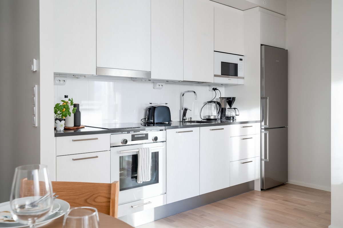 Apartemen baru bergaya di lokasi yang sangat baik dengan semua layanan yang mudah dijangkau dan akses mudah ke semua bagian Helsinki. Apartemen di samping stasiun kereta Pasila & pusat perbelanjaan Tripla: 70 restoran, 180 toko, bioskop, toko kelontong 24 jam, dll. Koneksi transportasi yang sangat baik: kereta yang sering digunakan, 5 menit ke pusat kota, 20 menit ke bandara. Stasiun kereta api⟫ 100 m ⟫ 50 m bus dan trem ⟫ 500m Exhibition and Convention Centre ⟫ 1km Helsinki Arena Taman hiburan Linnanmäki ⟫ sepanjang 1,3 km Stadion Olimpiade⟫ 1,5 km