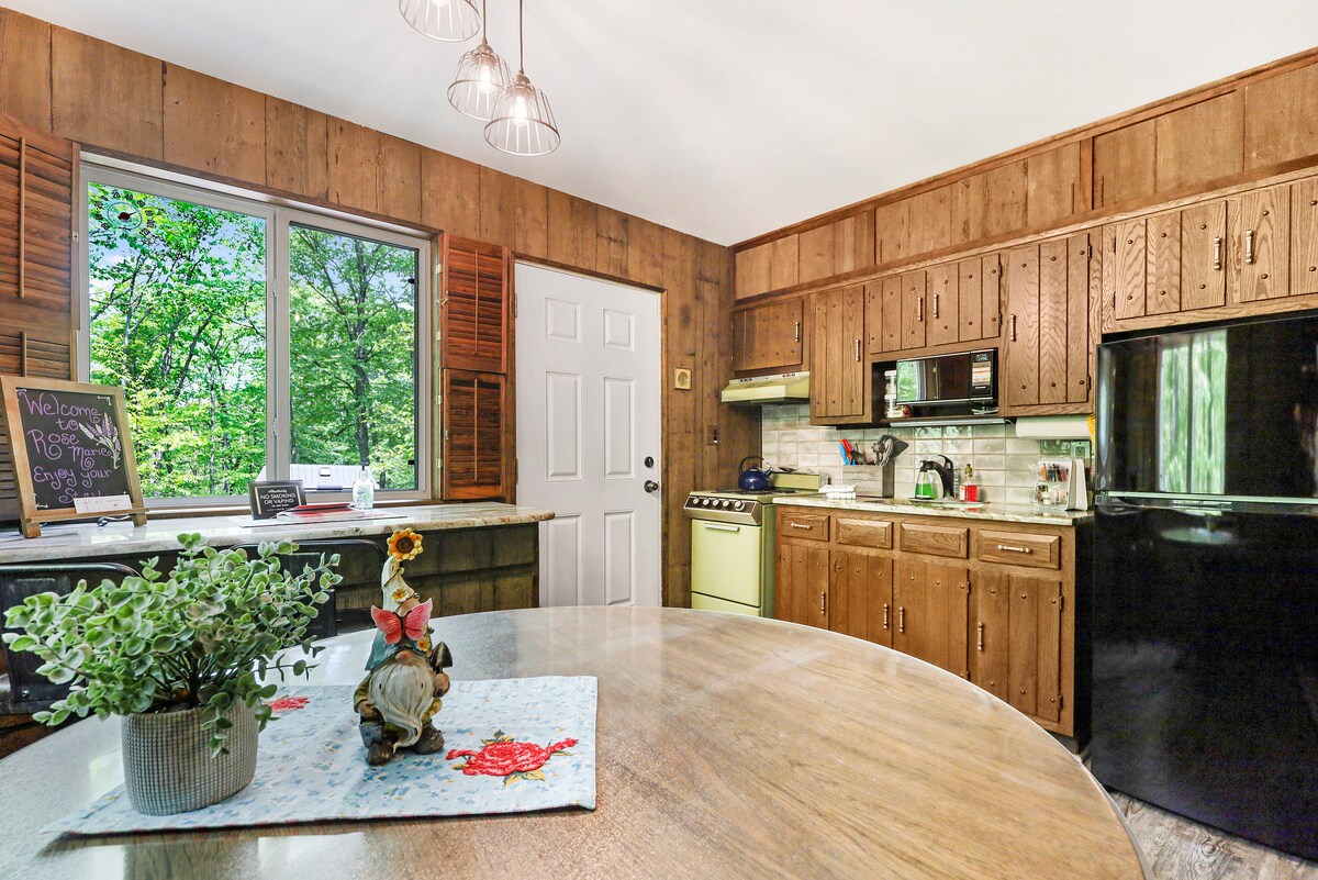 Selamat datang di Rose Marie, tempat peristirahatan yang tenang ini sangat cocok untuk Pencinta Alam, Romantis & Keluarga Kecil. Bekas kabin berburu ini telah direnovasi sepenuhnya dengan menambahkan fasilitas modern sambil mempertahankan sejarah & pesonanya. Kabin seluas 750 kaki persegi ini memiliki dua kamar tidur, satu kamar mandi & ruang tamu yang nyaman dengan kompor kayu. Dapur unik lengkap memiliki segalanya yang Anda butuhkan untuk menyiapkan hidangan masakan rumah. Apakah aku menyebutkan Delaware State Forest, 1.820 hektar tepat di luar pintu belakang