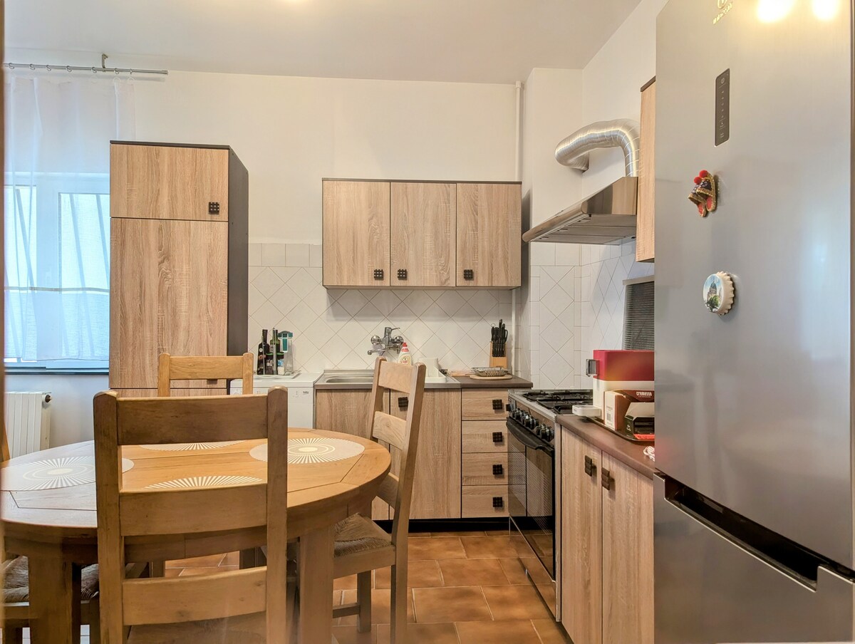 Selamat datang di Mido Lumo, apartemen bergaya dan luas yang dirancang untuk masa inap yang mulus. Dengan dua kamar tidur dan dua kamar mandi, tempat peristirahatan modern ini sangat cocok untuk keluarga, teman, atau pelawat bisnis. Nikmati dapur lengkap, ruang tamu yang nyaman, dan Wi - Fi berkecepatan tinggi. Check - in mandiri yang nyaman melalui resepsionis yang aman dengan pengawasan penjaga 24/7. Kompleks ini memiliki 2 restoran di lokasi, dan LIDL dan Mega Image hanya berjarak beberapa langkah, membuat kebutuhan sehari - hari dan bersantap mudah diakses.