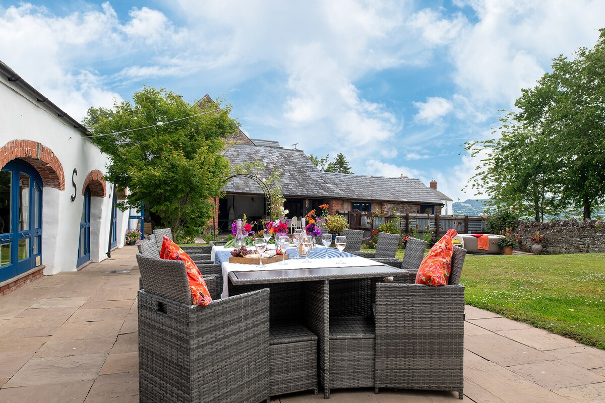 Annexe ke rumah pedesaan abad ke-16 kami datang ke sini untuk; bersantai & memanjakan diri. Kami ditemukan di jalur pertanian bergelombang, dengan pemandangan di atas ladang & kebun sider. Opsi untuk memanjakan diri Anda dengan perawatan kecantikan eksklusif di ruang perawatan pribadi tepat di luar kamar mandi spa mewah Anda. Atau bersantai di kursi nyaman di musim dingin / kursi berjemur di halaman menghadap selatan 'gaya Italia' di musim panas, bersantai di bak mandi air panas kayu pribadi (tersedia tambahan yang dapat dikenakan biaya).