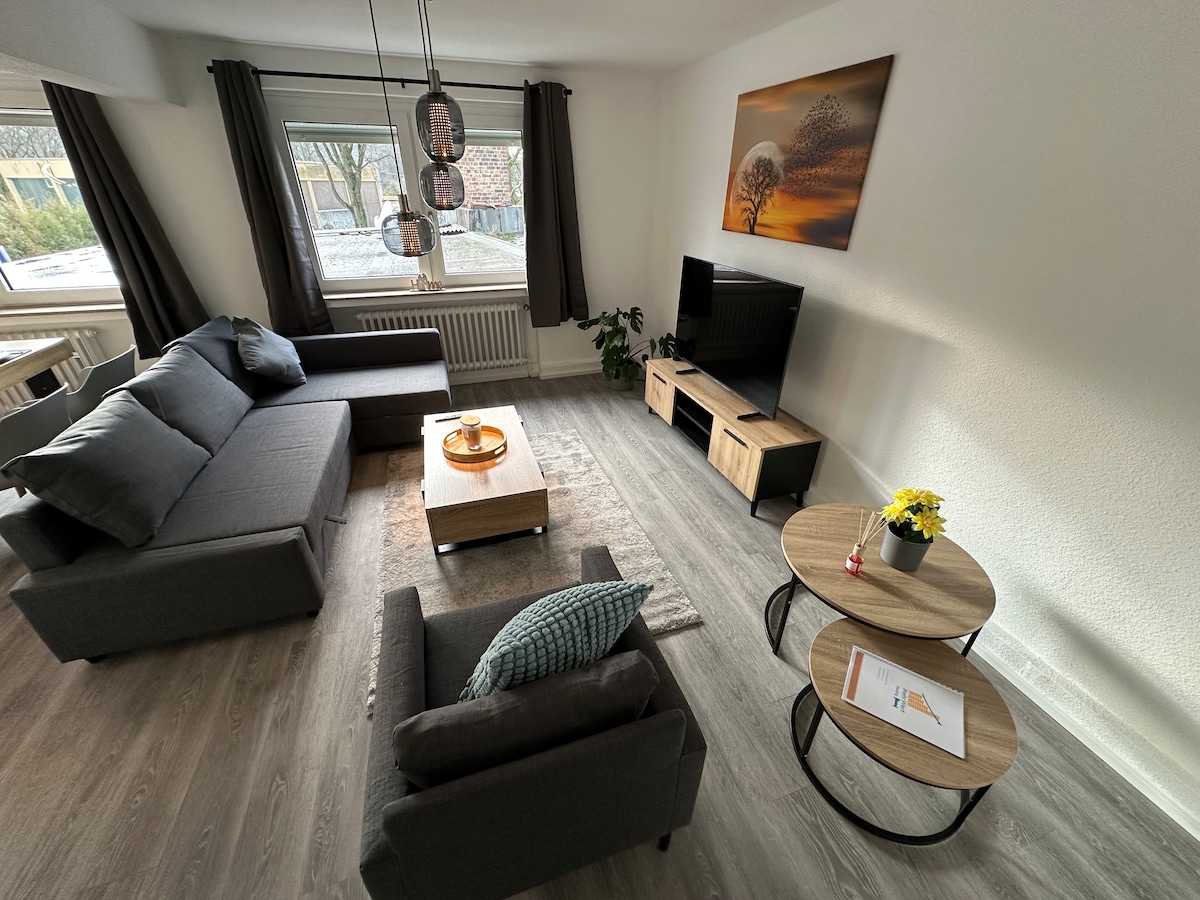 Apartemen yang tenang dan terawat di distrik hijau Buer. Veltinsarena, pusat kota, dan transportasi umum dapat dengan mudah diakses. Secara khusus, apartemen ini menawarkan keuntungan berikut: - Teras nyaman (diperbolehkan merokok) - Parkir gratis di rumah - Fasilitas DeLuxe dengan TV/GSP/AC - Tempat tidur single dapat dengan mudah disatukan sebagai double bed - Air, kopi dan teh - Check-in dengan kotak - Mesin cuci/pengering berdasarkan pengaturan secara terpisah