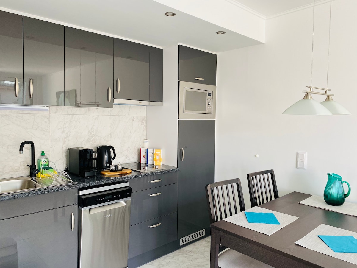 Apartemen yang cerah dan nyaman dengan dua kamar tidur terpisah dan ruang tamu, ideal untuk keluarga atau sekelompok teman. Apartemen ini dilengkapi dengan dapur lengkap, kamar mandi, balkon, Wi-Fi, TV, dan parkir gratis. Lokasi yang sangat baik di lingkungan yang tenang dan hijau — dalam jarak berjalan kaki dari danau termal, toko, kafe, dan restoran. Sangat cocok untuk liburan yang menenangkan.