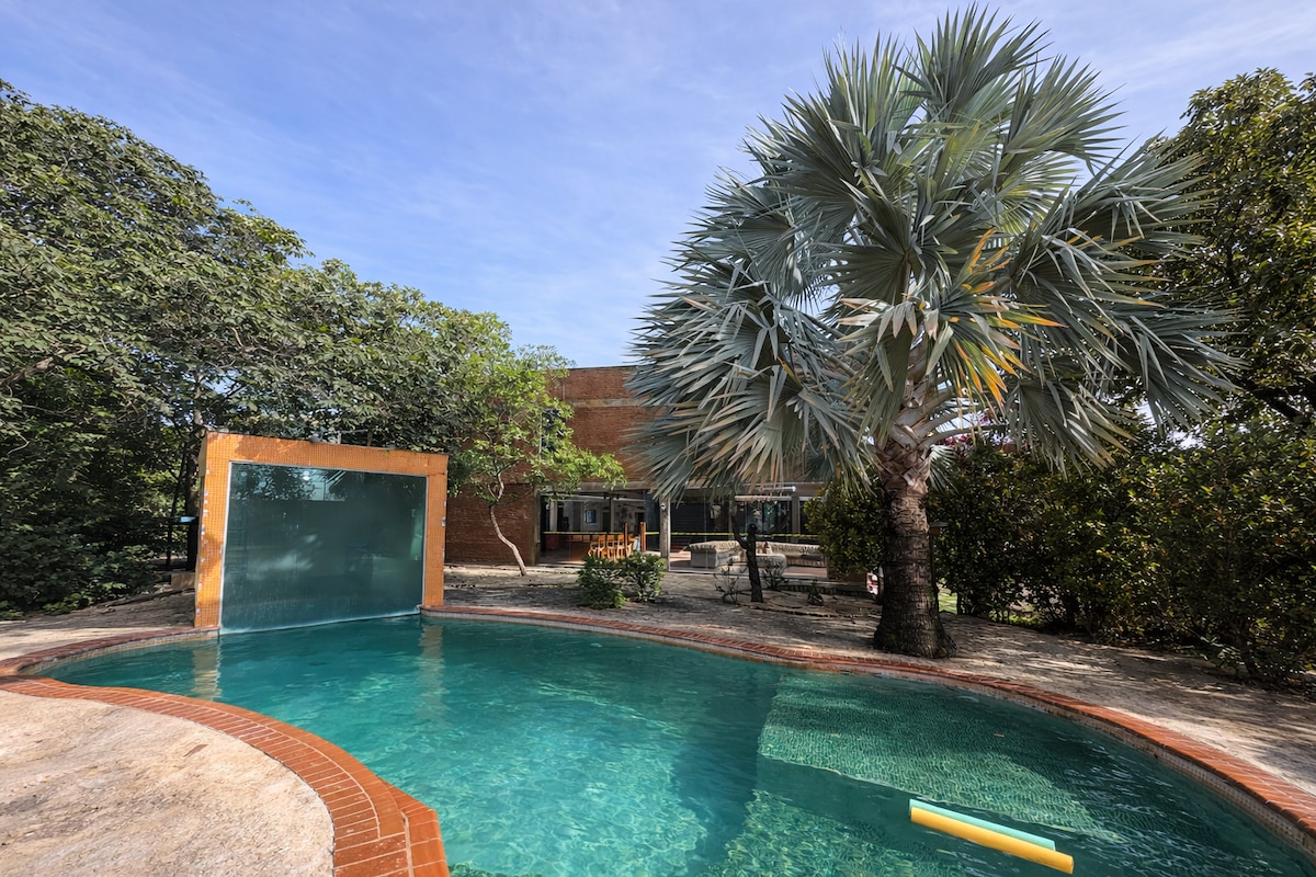 Teacara dengan pintu masuk pribadi, rumah markas dengan empat kamar tidur (1suite), dua kamar mandi, dapur lengkap, area dengan meja makan, Kios dengan kolam renang, sombreiro, kursi santai, dapur lengkap dengan meja makan dan toilet. Ruang halaman untuk permainan voli dan sepak bola. Sudut Api unggun Parkir dalam ruangan untuk 4 mobil