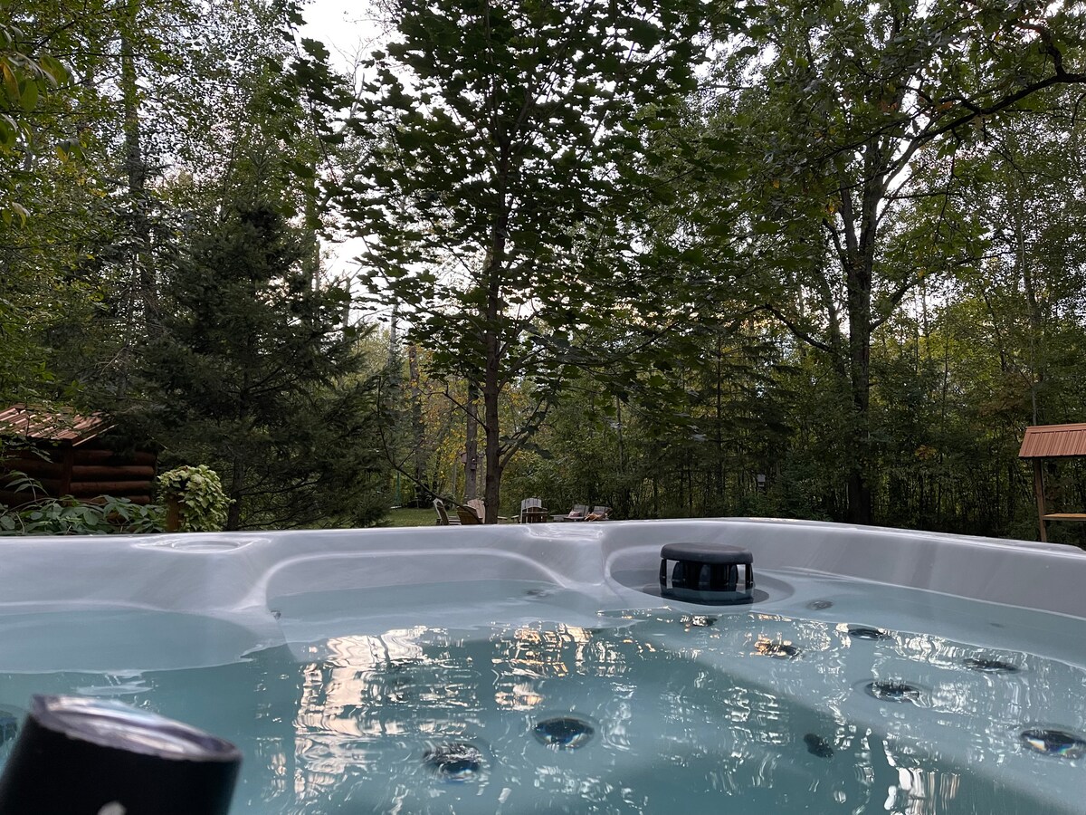 This modern cabin is located on 390 feet of the beautiful Kettle River. The river is well known for its great tubing, canoeing and kayaking. There is a gas fireplace, hot tub and WiFi. The newer hot tub can seat 6. Large expansive deck with seating. Bon-fire pit and a large gas grill. The cabin is updated and very comfortable. Linens are Pottery Barn and Kitchen Aid appliances! Washer and dryer. Seven acres of woods with deer and bird feeders for the wildlife. This cabin is amazing!!