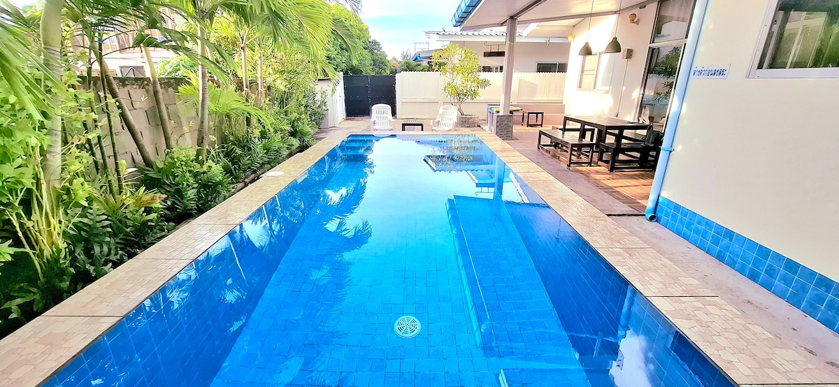 Vila 3 kamar tidur yang bagus dengan 2 kamar mandi, dapur Eropa lengkap dengan area makan. AC dan kipas angin langit - langit di semua kamar. Wi - FI berkecepatan tinggi GRATIS (Fiber). Ruang tamu memiliki TV pintar 55"dan IPTV. Kolam renang air garam pribadi dengan Jacuzzi. Taman pribadi dengan tempat tidur matahari dan pancuran luar ruangan. Area luar memiliki area makan & duduk dengan kipas angin langit - langit. Listrik 8THB per kwh dan air 60THB per m3 tidak termasuk dan harus dibayar secara terpisah dengan penggunaan sebelum check out. 2 mobil di properti.