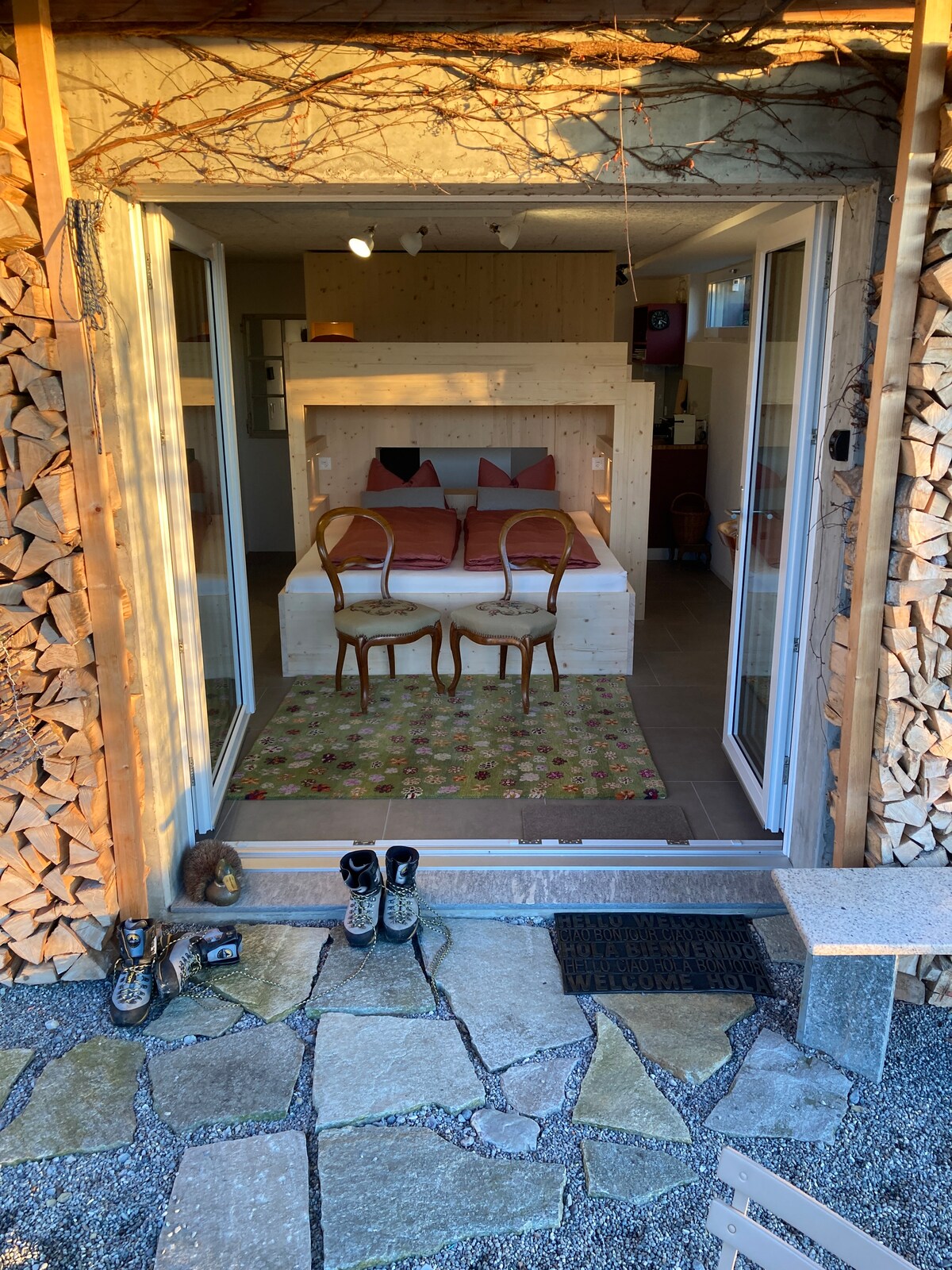 Gemütliches Studio in Schönengrund. Ideal für 2 Erwachsene und 2 Kinder. Das Studio hat ein Doppelbett und ein ausziehbares Sofa. Waschmaschine und Tumbler sind im Nebenraum vorhanden und auf Anfrage nutzbar. Grosszügiger Sitzplatz mit angrenzender Wiese. Kostenloser Parkplatz steht direkt vor der Unterkunft zur Verfügung. Bushaltestelle, Einkaufsmöglichkeit und Bäckerei in 5 Min. zu Fuss erreichbar.