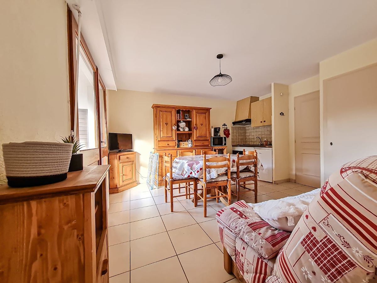 Akomodasi yang damai di pusat resor ski keluarga Hirmeraz di kota Bellevaux - Tempat tinggal 50 meter dari lereng, toko roti, restoran, ESF, penyewaan ski - Apartemen 24m2 - Balkon, mesin cuci piring, kompor listrik, TV, barbekyu listrik, set raclette, set fondue, tempat tidur bayi, dan mesin pembuat kopi NESPRESSO - 30 menit ke Danau Jenewa, 1 jam dari Annecy dan Chamonix Musim panas dan musim dingin yang luar biasa! ⛔️handuk dan perlengkapan tempat tidur tidak disediakan