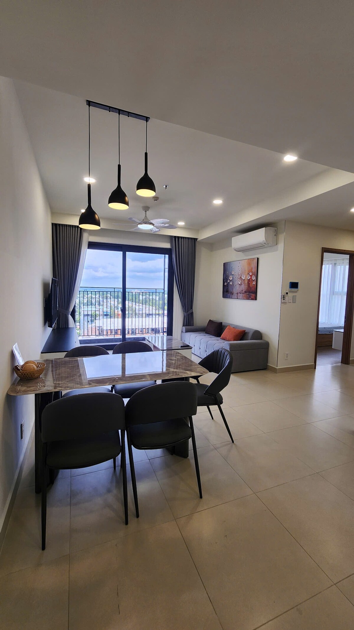 Selamat datang di apartemen modern 2 kamar tidur di Midori Park The Glory, yang berada di pusat Kota Baru Binh Duong. Apartemen lantai tinggi ini luas dan lapang, menampilkan balkon dengan pemandangan kolam renang dan lapangan tenis — ruang damai yang dipenuhi cahaya alami. Aeon Mall Binh Duong Canary berada tepat di depan gedung, hanya beberapa langkah untuk berbelanja, bersantap, atau menonton film. Lokasi yang sempurna untuk keluarga, pelawat bisnis, dan tamu liburan.