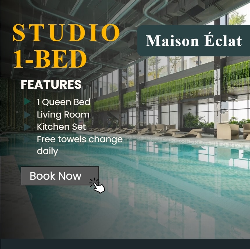 1BR Modern | Sangat Bersih & Lengkap Pemandangan Kolam Renang