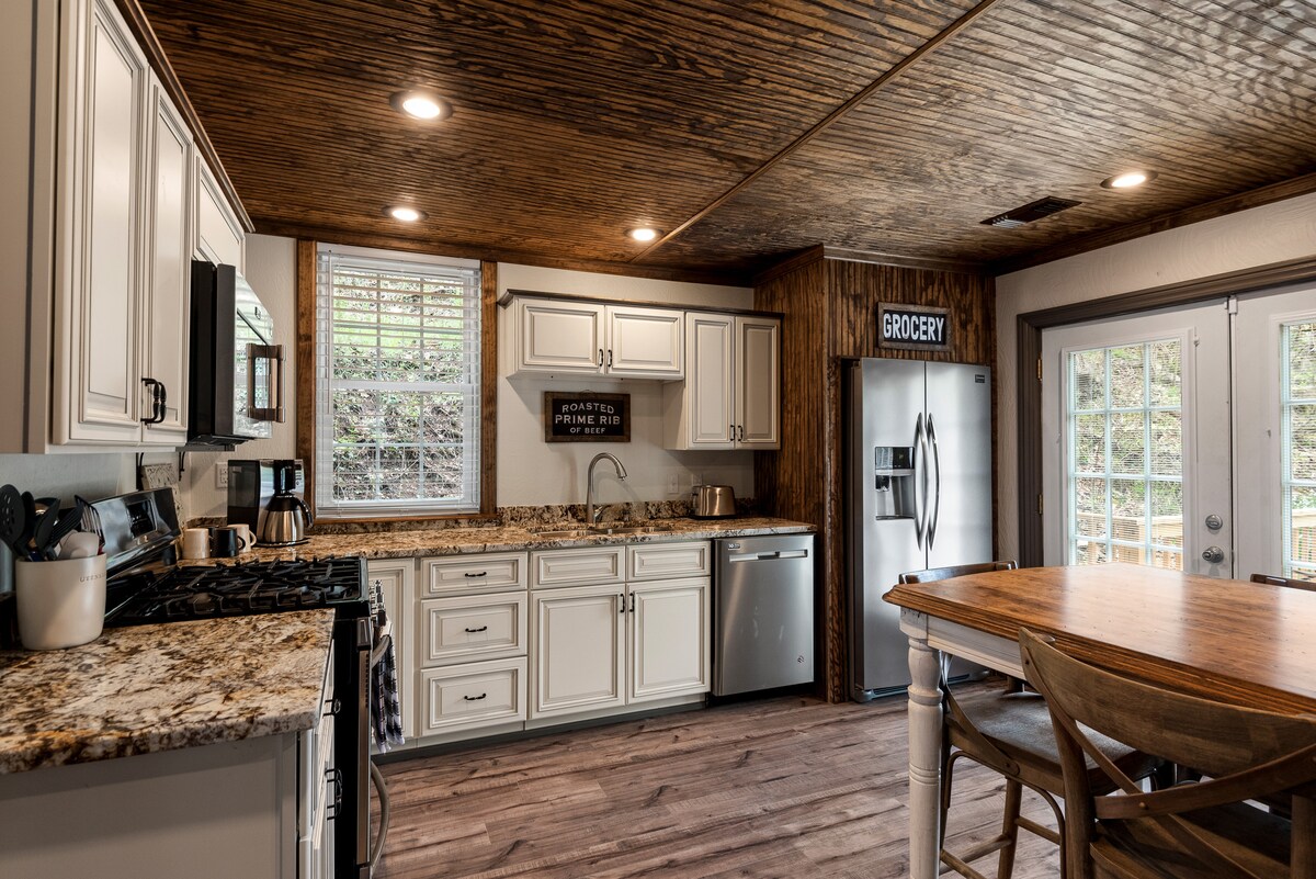 Rasakan suite 1 kamar tidur seluas 660 kaki persegi yang menawan ini, hanya beberapa langkah dari Holiday Island Marina di Table Rock Lake yang terkenal di dunia. Fasilitas modern dan nyaman akan membuat tempat ini terasa seperti di rumah. Nikmati mesin cuci/pengering yang dapat ditumpuk baru, pancuran mandi besar, meja rias, tempat tidur berukuran queen, karpet baru di ruang makan dan ruang tamu, dan TV pintar 55" dengan kabel. Peralatan tahan karat baru dan tempat parkir yang luas untuk mobil, perahu, dan RV.