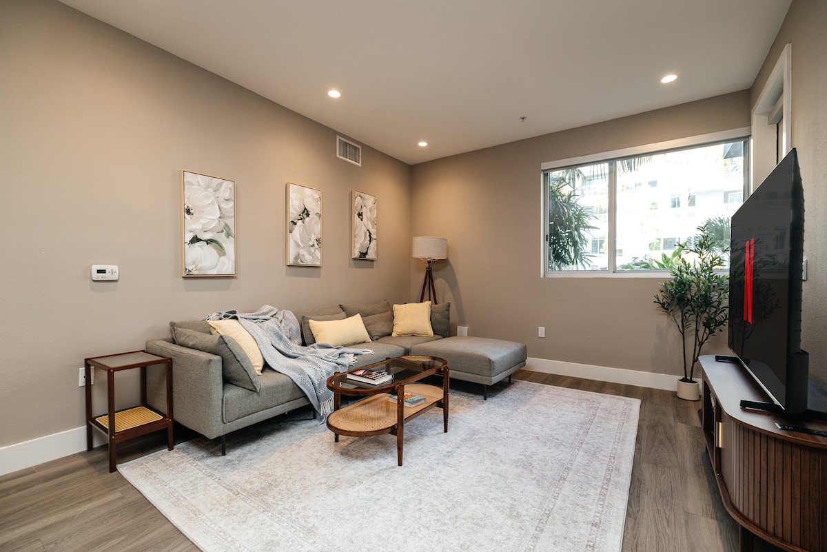 New, MODERN, ELEGANT & serene HOLLYWOOD complex in the city. HIGH-END condominium by the famous SUNSET STRIP & walking distance everything! PRIME Location! BEAUTIFULLY designed & decorated. Shower/Tub; large smart TV with free Netflix/Hulu; fully equipped brand new kitchen with dishwasher; very cute dining & work area; brand new queen size MEMORY FOAM BED & stylish, futon sofa! You‘ll absolutely love this place :-)