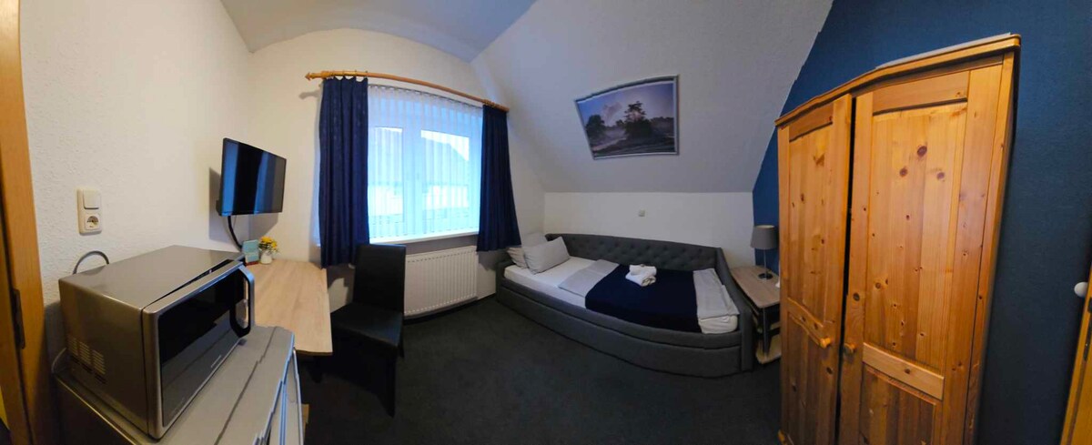 Anda akan sangat menyukai fasilitas bergaya di tempat menawan ini. Di kamar yang nyaman kami bisa menampung 1 -3 orang. Tempat tidur box spring yang sangat nyaman menawarkan tidur yang nyaman. Dengan pemandangan pedesaan dan di tengah - tengah ketenangan alam, Anda bisa mematikan dan menikmati alam Nordheide. Koneksi cepat ke A1 dan A7 sama - sama murah dalam 10 menit di jalan raya dan antara Hamburg dan Bremen.