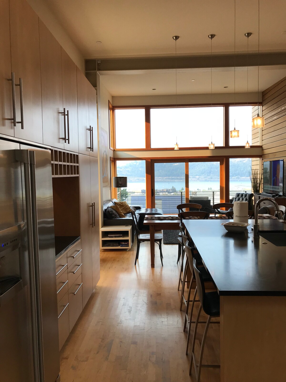 Townhouse kontemporer yang terang dan terang di lokasi utama namun tenang. Hanya beberapa langkah ke kawasan pusat kota Hood River dengan restoran, pusat perbelanjaan, galeri, teater, pabrik bir, dan banyak lagi. Pemandangan spektakuler Sungai Columbia dengan jendela dari lantai hingga langit - langit dan dek depan di luar area utama. Perabotan lengkap dengan perabotan berkualitas tinggi, tempat tidur super nyaman, dan dapur gourmet. Tempat tidur yang nyaman maksimal 6 orang. Tiga kamar tidur dengan 3 tempat tidur king, 2,5 kamar mandi. Parkir garasi, patio/halaman kecil.