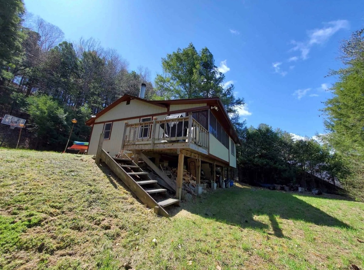 Cozy, clean and comfortable fully equipped Adirondack vacation home. Near great hiking, fishing, swimming, boating, Natural Stone Bridge & Caves, Adirondack Extreme Adventure Course, white water rafting, horse back riding, outlet shopping, less than 1/2 hr to Lake George Village & Six Flags Great Escape Amusement Park, an easy beautiful 1 hour drive to Lake Placid, Whiteface Memorial Hwy, Ausable Chasm, High Falls Gorge, and Adirondack Experience (formerly Adk Museum).
