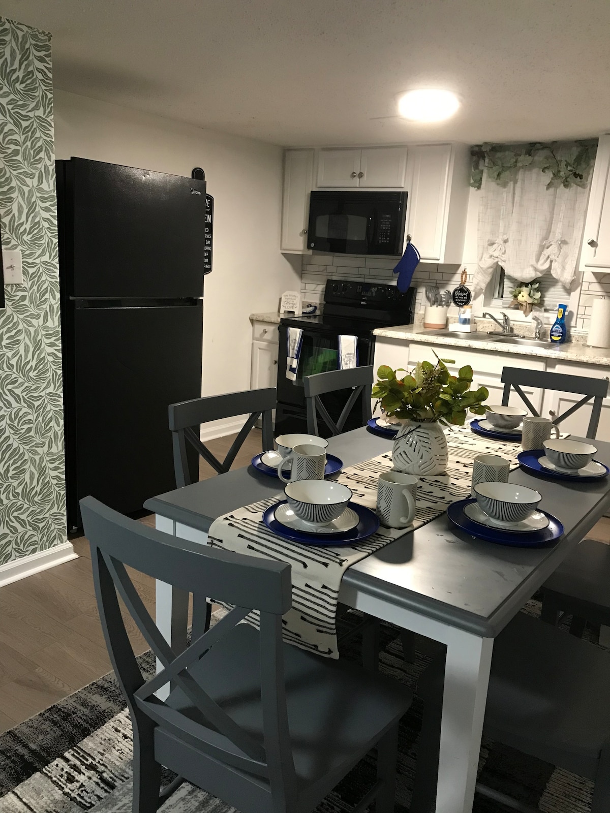 Beautiful townhouse located in a quiet community. Kitchen is fully equipped with everything that you need to make all meals. 1st floor is spacious with a kitchen/living room area equipped with a washer/dryer, TV & powder room. Q size air mattress and a nice cozy L shape couch. Up the spiral staircase to a nice K size bed, bunk beds, full size bathroom and TV. Private fenced patio with chairs for entertaining. Cable TV/smart - $50 PET FEE EXTRA