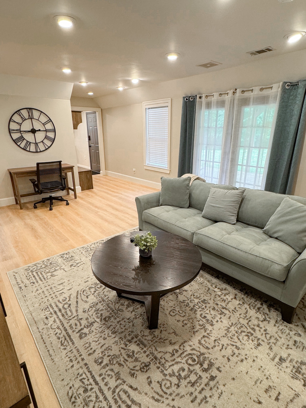Pintu masuk pribadi Termostat pribadi di apartemen. Tamu memegang kendali atas suhu Pemanas Independen/AC Pribadi: kamar tidur, kamar mandi, dapur, lemari, ruang makan kecil Kulkas mini, meja masak, peralatan memasak, penanak nasi, pembuat kopi, ketel, microwave Nikmati akses gratis ke Netflix, Disney+, HBO Max, Hulu, ESPN+, saluran TV lokal WiFi gratis Terletak di semi - ruang bawah tanah rumah keluarga Parkir gratis di jalan berdekatan dengan rumah 3 mil ke pusat kota Suwanee. 11 menit ke Infinite Energi Center & PCOM