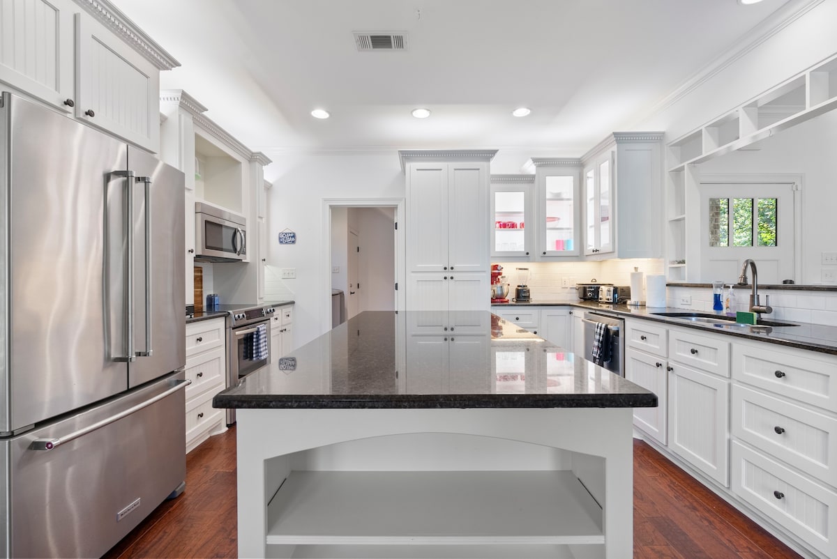 Lake front*cedar hot tub * kayak * canoe * fire pit * outdoor shower * Tesla universal charger * grill * screened in porch * We JUST custom-built this waterfront, "Treetops Hideaway on the Water" for our retirement; you get to stay here instead of us (and we are jealous.) It has a full luxury kitchen, LG frontload w/d, king beds, original art, estate furniture, and amenities. This is a private entrance two-bed, two ensuite bath cottage with walk-in showers and Kohler soaking tub at 1800 SF.
