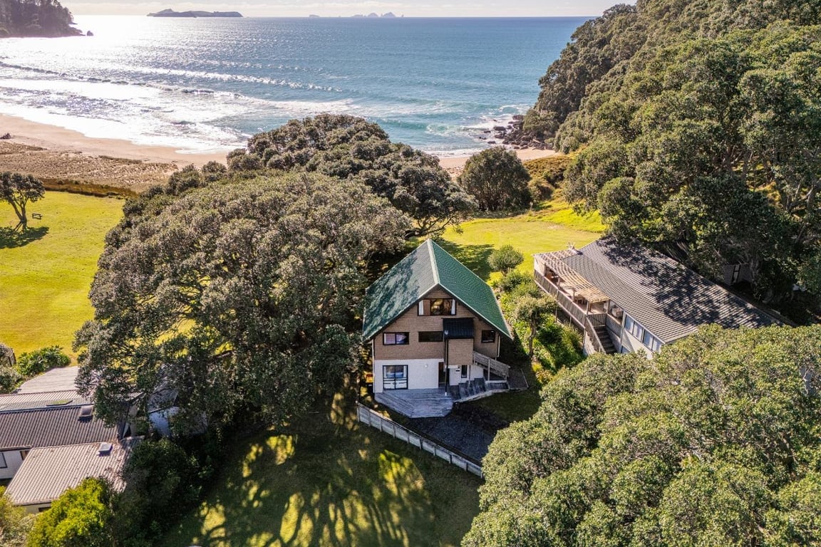 Terletak di antara pohon pohutukawa, rumah liburan asli tahun 50-an ini berlokasi tepat di pantai Whangamata. Nikmati pemandangan laut yang tidak terhalang dari dek dan halaman depan yang luas. Whenuakura (Donut Is.) yang terkenal berada di seberang serta Hauturu Motu (Clark Is.), dapat diakses dengan berjalan kaki saat air surut - ritual Kiwi. Beberapa menit ke toko, bar, dan kafe lokal dan berjalan kaki sebentar ke minimarket terdekat. Taman bermain anak-anak yang bagus bisa ditemukan di Island View Reserve di ujung jalan.