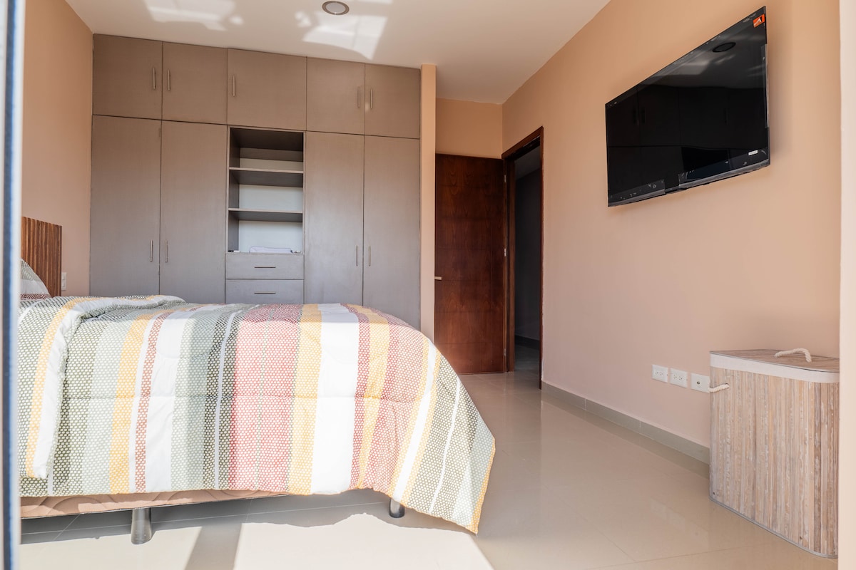 Apartemen lantai dasar yang luas dan cerah, ideal untuk keluarga, teman, atau tamu dengan mobilitas rendah. Tempat ini memiliki 3 kamar tidur, 3 kamar mandi lengkap, ruang tamu, area makan, dapur lengkap, WiFi, Smart TV 65'', dan parkir gratis. Terletak di pusat kota Cancún, hanya 5 menit dari Zona Hotel dan 20 menit dari bandara, dengan supermarket, restoran, dan toko dalam jarak berjalan kaki. Sempurna untuk wisata Riviera Maya atau bersantai di pantai dengan kenyamanan dan gaya total.