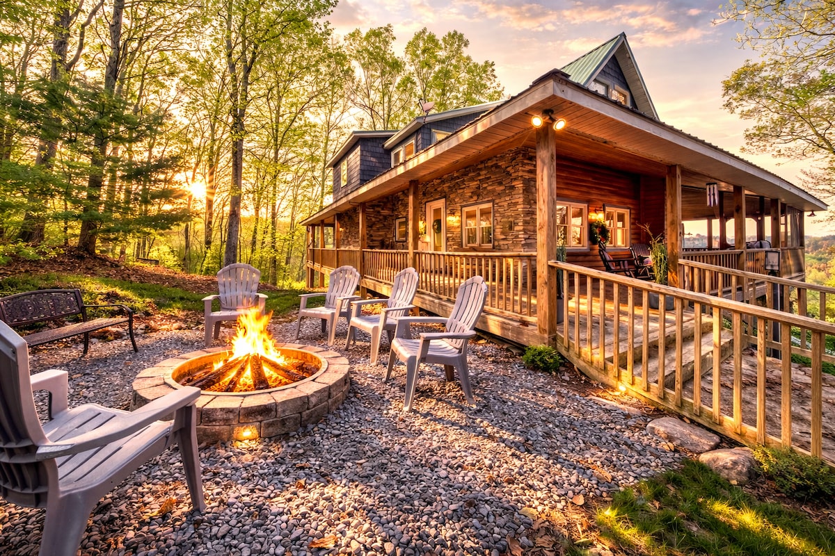 Masuki oasis mewah 2BR 2BA - properti yang indah dan tenang di Pegunungan Blue Ridge. Liburan santai dengan pemandangan pegunungan dan hutan yang menakjubkan, terletak 20 menit dari kota Blue Ridge, McCaysville, dan Murphy, dengan banyak atraksi dan keindahan alam. ✔ 2 Kamar Tidur King ✔ Open Design Living ✔ Dapur Berperabotan Lengkap ✔ Bak Mandi Air Panas. Perapian ✔ kayu bakar dalam ruangan ✔ Patio (perapian gas, TV, pemanas, pemanggang, bar basah) Sistem Audio✔ Sonos Wi - Fi Kecepatan ✔ Tinggi ✔ Parkir