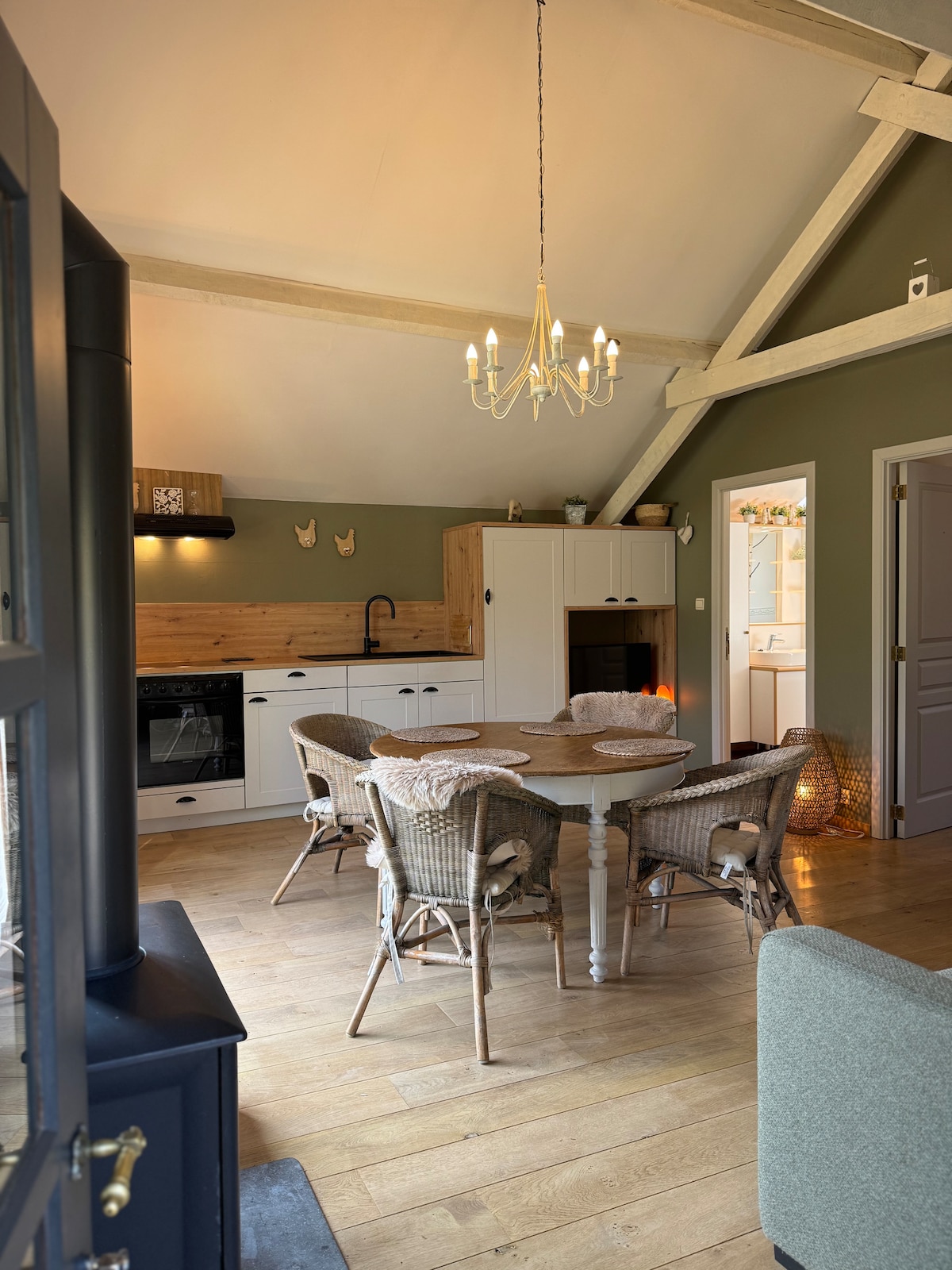 Le LOFT est situé dans un hameau très calme à proximité de l’autoroute. Il constitue une annexe d’une maison de type « maison de maître » et est pourvue d’une terrasse privative en pierre bleue, d’un jardin situé à coté d’une prairie avec des moutons. Le loft est équipé d’une cuisine équipée avec frigo-congélateur, micro-onde, four, taque vitro-céramique. D’une grande télévision écran plat avec Netflix +chaines nationales. Dans les salle de bain, vous trouverez une douche, un lavabo, un wc.