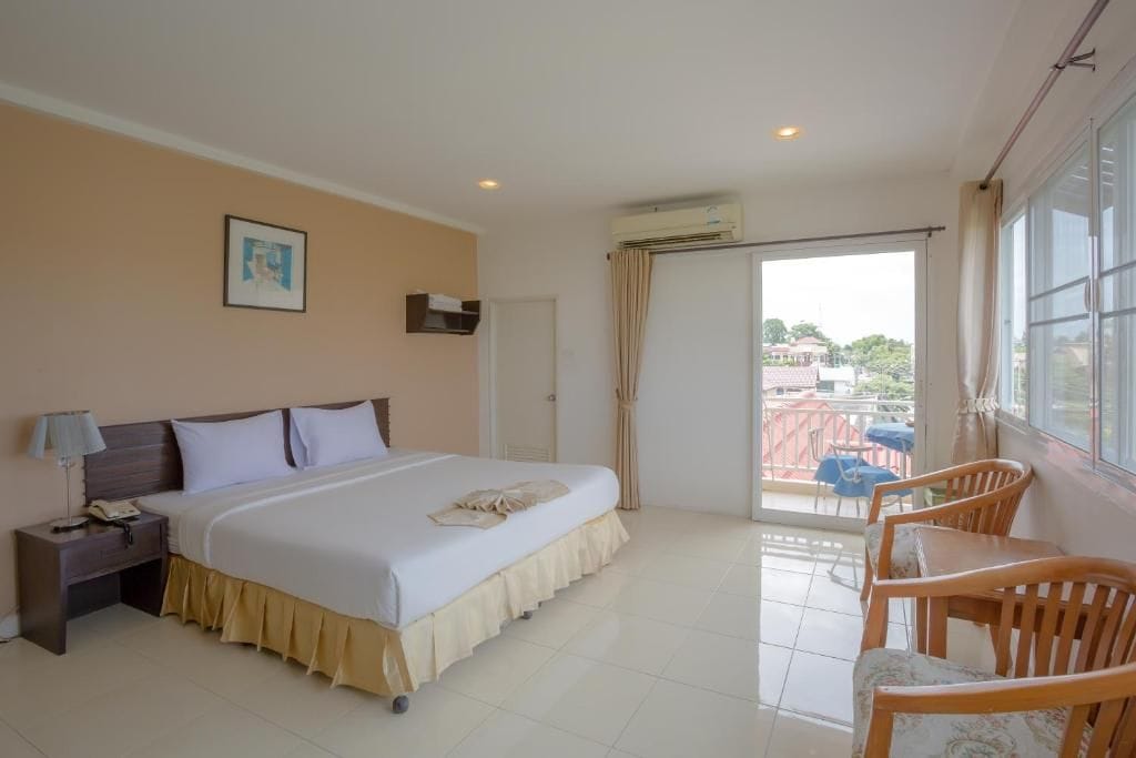 Kamar ini berada di lantai tujuh dan di sisi utara gedung. Bagian depan Anda adalah laut dan bagian belakang Anda adalah pegunungan. Di bawah gedung, ada kedai kopi dan kafe untuk anak-anak. Luas Kamar: 47,5 meter persegi. Ukuran tempat tidur: King size untuk 2 orang. Harga : 2000฿/malam untuk hari kerja 2300฿/malam untuk akhir pekan (Kami tidak memiliki layanan sarapan) Kami memiliki meja balkon untuk menikmati pemandangan.