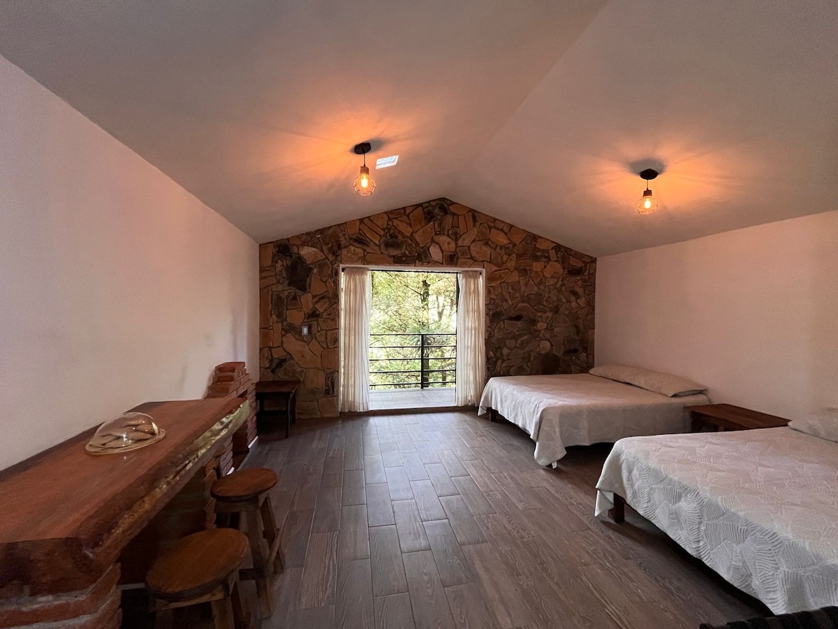 Localizada en una reserva protegida privada a 2.5 hrs de CDMX, la Skyhouse compite entre las casas de montaña más bellas de México. Nuestro equipo protege 740,000 m2 de bosques, montañas, 9 KM de paseos, cascadas y manantiales. Se renta en exclusiva para 6 personas. Cuenta con dos recámaras (cama queen), cocina equipada, sala, chimenea, balcones panorámicos, asador y baño. WiFi ilimitado para home office. La comunidad ofrece platillos locales. Mascotas bienvenidas. Actividades de conservación.