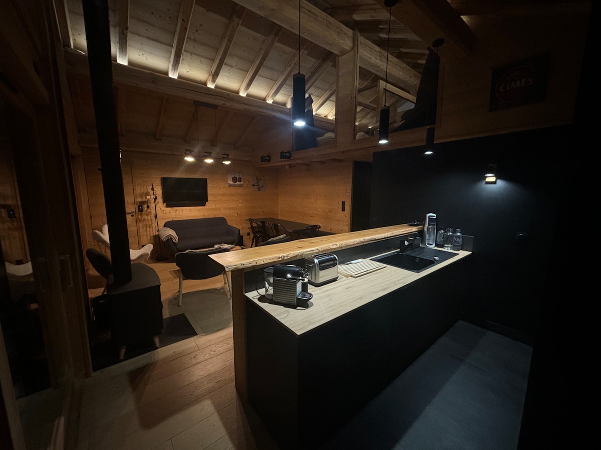 Rented in the centre of Alpe d'Huez flat of 33m² + 7 m² balcony facing south, completely renovated in the mountain style (summer 2021). It is south facing with a view of the Oisans massif. The sleeping arrangements are for 6 people (1 double bed and 2 single beds in the mountain/mezzanine area and a sofa bed of 140cm in the living area). All beds are equipped with duvets. The flat is very close to the shops and is very well equipped. Ski in/ski out.