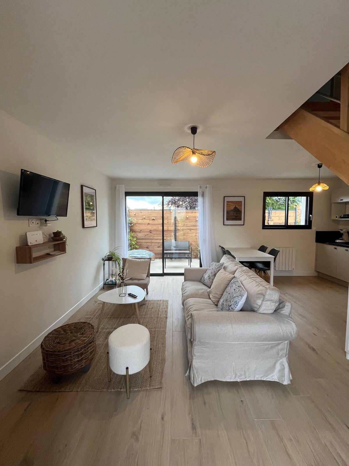 Akomodasi dengan ruang tamu besar, dapur, ruang cuci kecil dan toilet. Lantai atas 2 kamar tidur, Tempat tidur ganda di 2 tempat tidur single lainnya. Kamar mandi, shower, dan toilet. Parkir di depan rumah dan ruang hijau di belakang rumah. Akomodasi terletak 2 km dari tempat parkir mobil antar jemput gratis yang membawa Anda ke Mont Saint - Michel. Kemungkinan akses langsung dengan berjalan kaki.
