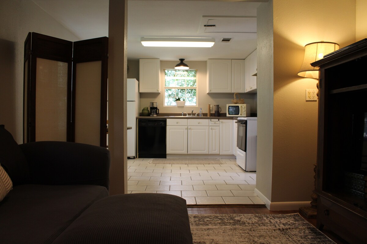 Apartemen tamu yang tenang di tengah kota ini adalah basis rumah yang sempurna untuk apa pun yang membawa Anda ke Baton Rouge. Tempat ini ideal untuk pasangan atau individu yang mencari tempat tenang yang berada dalam jarak berjalan kaki ke banyak tempat di tengah kota yang luar biasa dan berkendara cepat ke LSU dan pusat kota. Apartemen garasi ini baru direnovasi dan dilengkapi ruang tamu yang nyaman, dapur dan sudut makan, kamar tidur yang sejuk, dan kamar mandi lengkap.
