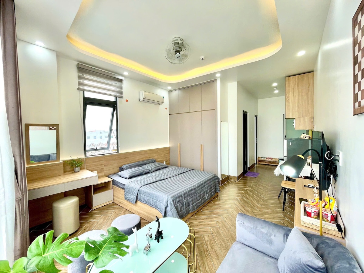 Maison Studio | Balkon • Dapur • Pemandangan Indah Dekat Dermaga Ninh Kieu Bersantai dengan nyaman di studio bergaya ini yang berada di pusat Ninh Kieu. Bangunlah untuk menikmati kopi pagi di balkon pribadi Anda atau bersantai di bak mandi yang nyaman setelah menjelajahi kota. Tempat tidur king, balkon, bak mandi & dapur lengkap Kafe & restoran di dekatnya (banh mi, hidangan laut, vegetarian) <3 menit berjalan kaki ke tur Pasar Malam & Pasar Terapung WiFi Cepat (200Mbps), Smart TV Check in 24/7. Sangat cocok untuk pasangan, wisatawan solo, atau masa inap yang lebih lama