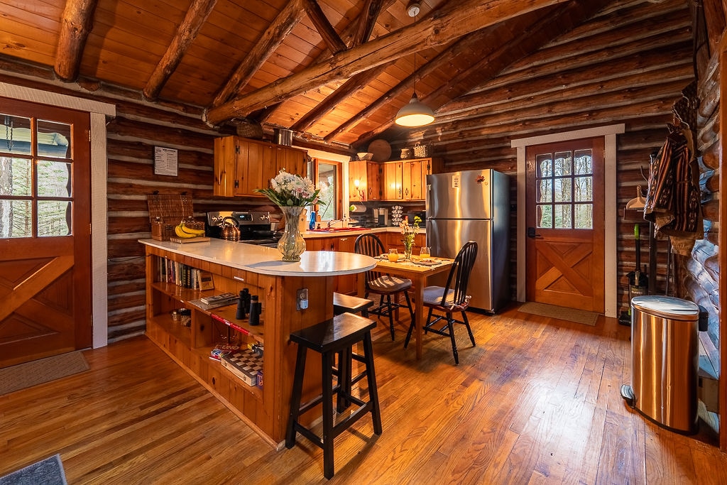 Terletak di tepi hutan dan dinamai sesuai burung hantu penghuni kami, Hooting Haus adalah kabin peristirahatan bergaya Eropa yang dekat dengan semua yang ditawarkan Penn State. Pesona pedesaan dapur gourmet ini menampilkan pulau seng, meja dapur dengan permukaan kayu, dan dinding batu alami. Jamu tamu di meja pinus buatan pengrajin sambil bersantap di samping perapian antik. Bersantai dengan berendam di bak mandi air panas, lalu akhiri malam dengan berbagi cerita di bawah langit gelap sambil berkumpul di sekitar perapian dengan minuman hangat yang menenangkan atau secangkir cokelat krim.