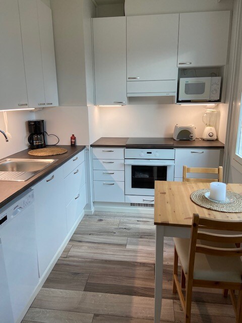Nordic style apartment 13 minutes walk from Hyvinkää train station. Apartment has one bedroom, living area, kitchen and cosy glassed-in balcony and it is located in the ground floor. Kitchen is equipped with dish washer, oven, stove and microwave oven. In your private newly renovated bathroom you have washing machine and a shower. Private parking slot is in the front of the building. By train you reach Helsinki in 45 minutes.