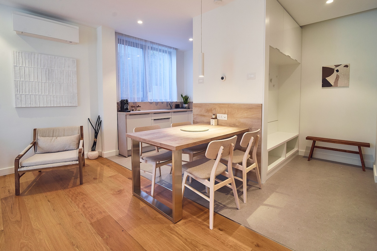 Tempat peristirahatan bergaya wabi - sabi perkotaan yang dekat dengan jantung kota. Terletak di daerah yang tenang dan jauh dari kebisingan perkotaan, hanya 5 menit berjalan kaki ke Istana Budaya dan Palas, apartemen ini menggabungkan desain minimalis dengan elemen alami, terinspirasi oleh filosofi Jepang. Ideal apakah Anda berada di kota untuk bisnis atau untuk menikmati semua yang ditawarkan Iasi. Anda akan merasa seperti di rumah sendiri, di tempat baru dengan fasilitas modern yang menginspirasi ketenangan, keseimbangan, dan relaksasi setelah hari yang sibuk.