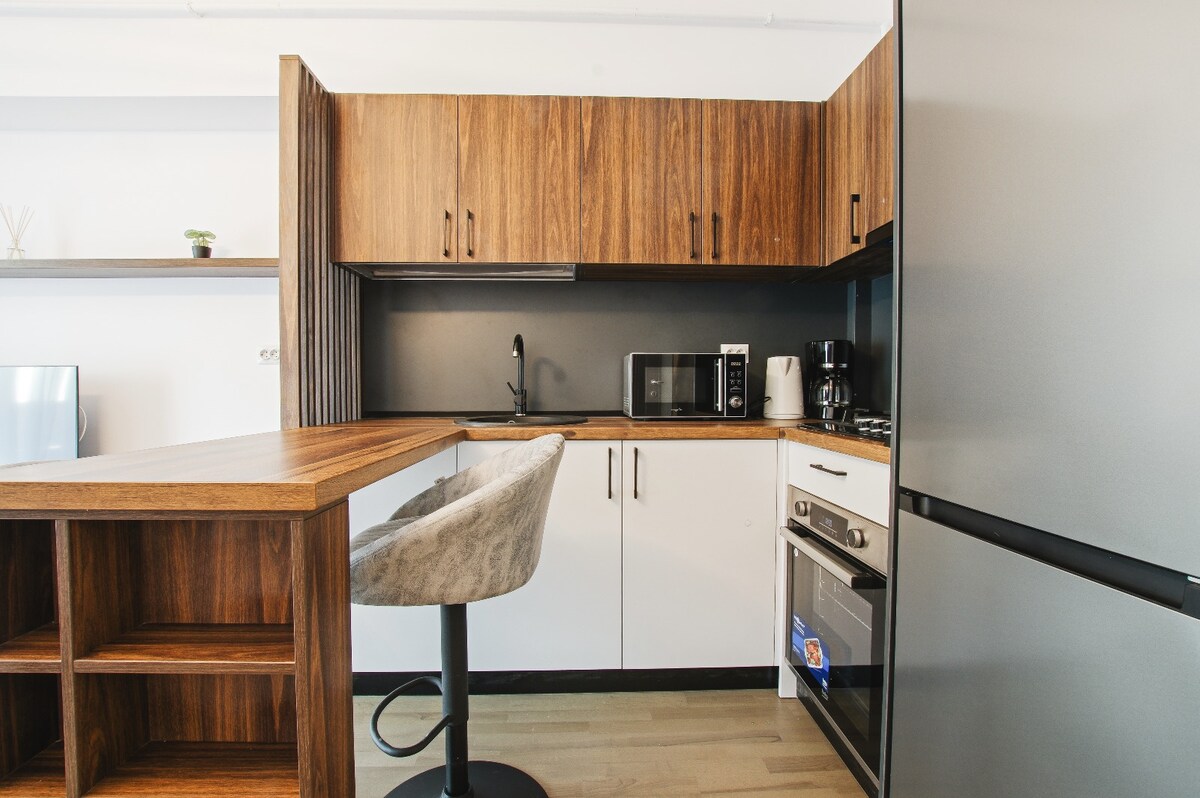 Selamat datang di apartemen bergaya dan nyaman di pusat kota tempat desain modern bertemu kenyamanan dan keanggunan. Setiap detail telah dipilih dengan cermat untuk menciptakan suasana yang hangat dan menarik—sangat cocok untuk liburan santai yang berkesan di kota: • Apartemen 2 kamar yang luas •Perabotan lengkap dengan perabot modern -Dapur dilengkapi penuh • Ruang tamu yang nyaman dengan sofa yang dapat dikonversi • Kamar tidur elegan dengan tempat tidur double •Wi-Fi, 2 Smart TV, akses NETFLIX gratis •Kamar mandi dengan fasilitas dasar