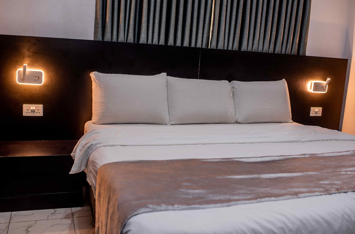 Apartemen mewah 1 kamar tidur yang dirancang dengan selera tinggi terletak di lingkungan yang tenang dan makmur 📍di perkebunan oluyole, ibadan. Fasilitas meliputi: - Wi - Fi super cepat - Dukungan 24 jam - Listrik 24/7 + inverter - AC - Pemeliharaan rumah - Netflix - Dstv -Kolam Renang - Dapur berfasilitas lengkap - Tempat parkir gratis - Keamanan terbaik Untuk masa inap singkat: Minimum 2 hari. * Layanan tambahan *: Koki 👩🍳 sesuai permintaan ⓘ️Dilarang MEROKOK DI DALAM RUANGAN🚭 hanya di balkon