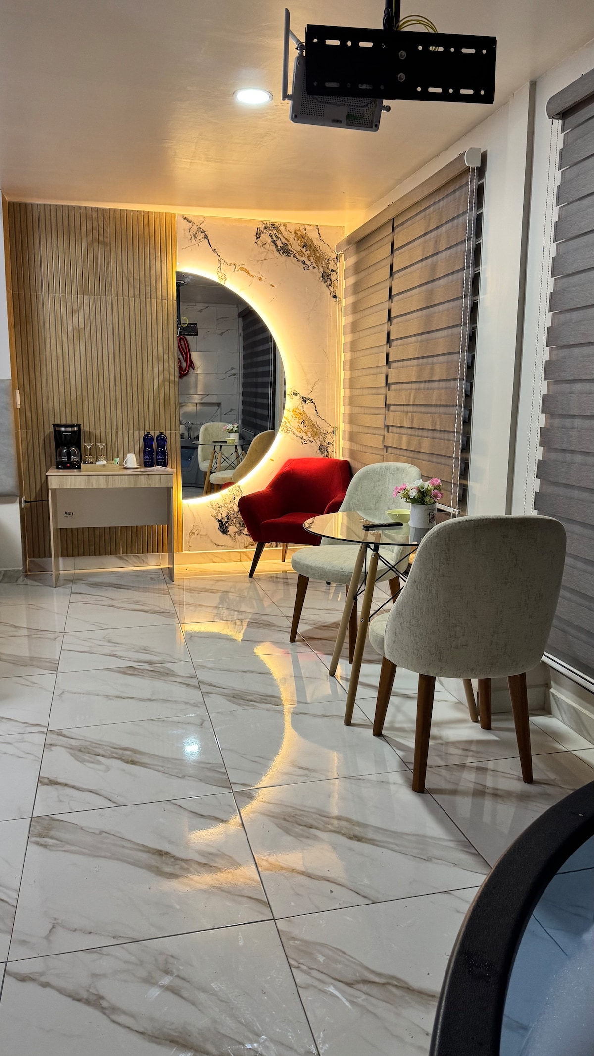 Berlibur ke kenyamanan dan kemewahan di suite berperabot lengkap kami, yang dirancang untuk memberi Anda pengalaman yang tidak terlupakan. Terletak hanya 5 menit dari pusat kota, suite kami adalah tempat yang ideal untuk pelancong bisnis maupun mereka yang mencari liburan yang santai. Baik Anda datang untuk bekerja, belajar, atau sekadar menikmati momen istimewa, suite kami adalah tempat yang sempurna untuk merasa seperti di rumah. Kami menantikan kedatangan Anda!