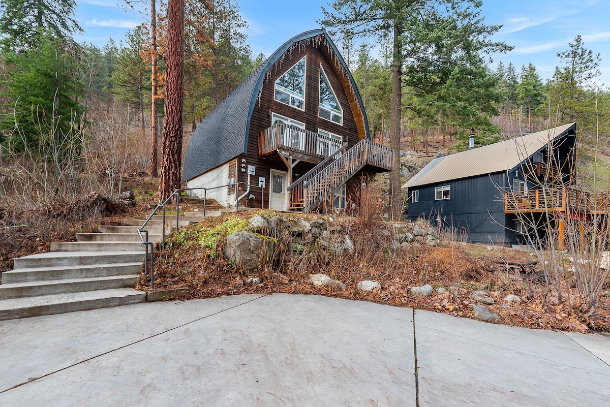 Chalet Alpen juga! (Sewa Jangka Pendek STR #109), adalah tempat yang indah dan terpencil di dalam rumah kami, tepat untuk waktu luang Anda untuk menjelajahi atau memulihkan diri. Ada pintu masuk terpisah, bak mandi air panas, perapian, dan tempat parkir untuk satu mobil. Kami dekat dengan pusat kota (5 menit berkendara) dan aktivitas rekreasi luar ruangan yang berjarak beberapa menit seperti hiking, panjat tebing, golf, arung jeram, bersepeda mt., dan ski XC. Pengaturan yang indah dengan pemandangan yang menyenangkan!