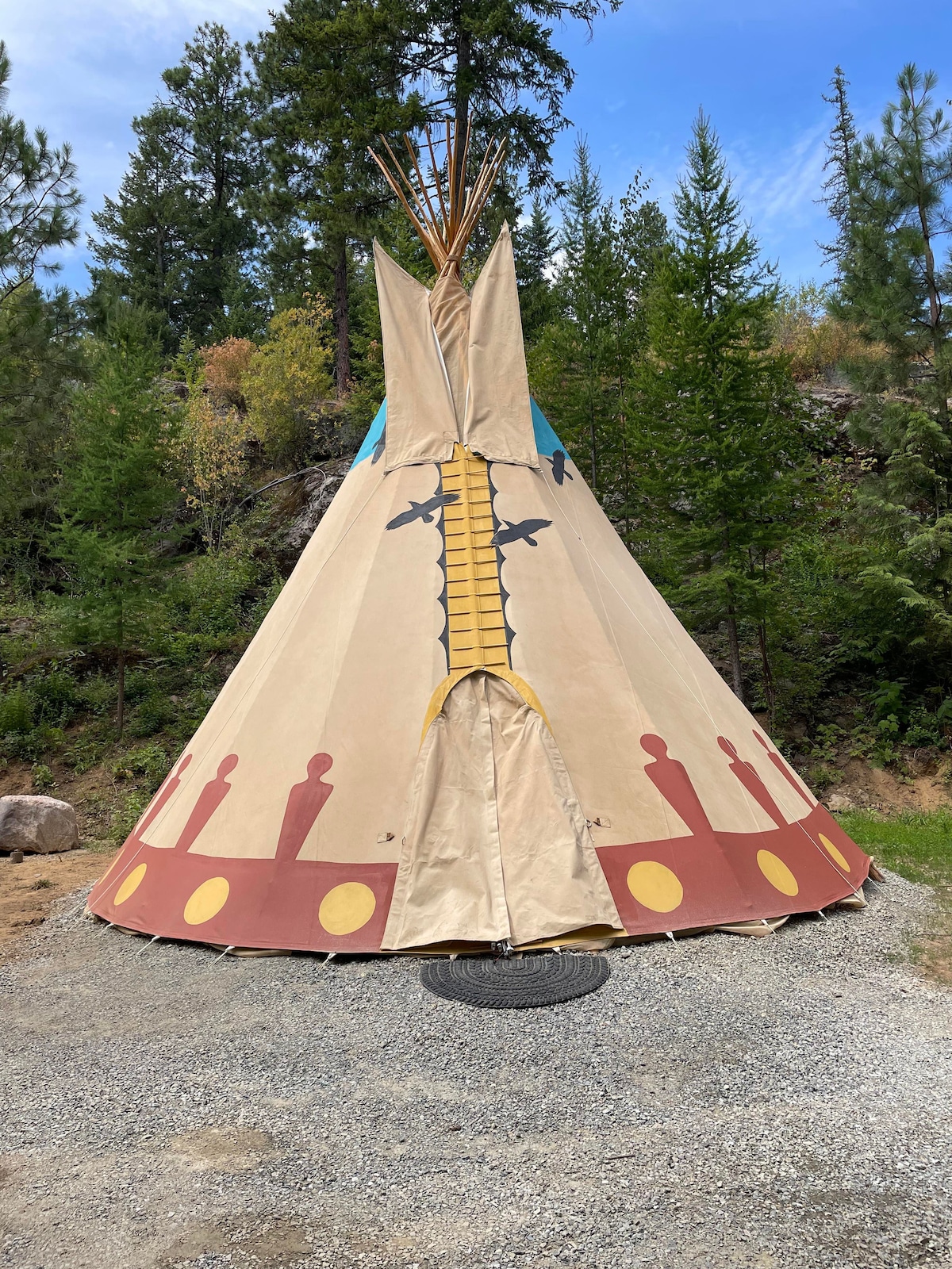 Kami mempersilakan Anda merasakan pemandangan alam di pegunungan Naples yang megah, Idaho. The Raven's Nest Teepee (24") Dibangun di lantai beton, dengan 1/2 kamar mandi, listrik, tempat tidur king, futon, tempat tidur bayi, dan bar kopi. Lubang api menyala di batu cerita yang sempurna, dan suara burung yang menenangkan di seluruh lereng gunung Selkirk. Properti Teepee mencakup toilet pembilasan rumah pancuran luar ruangan pribadi, dan dapur/ruang makan luar ruangan tertutup dengan BBQ gas. Ramah hewan peliharaan. (Tidak ada trailer)