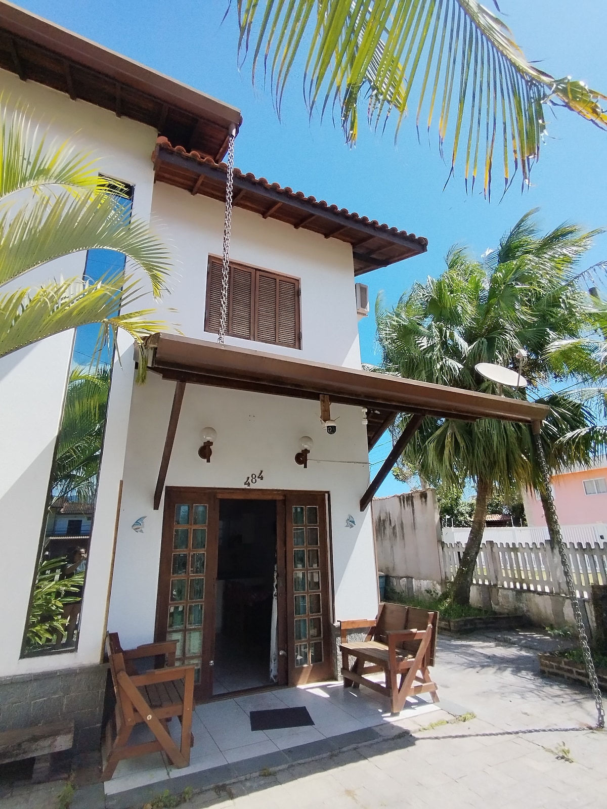 Rumah besar dan lapang, lanskap indah, kamar melengkung putih, suite dengan TV dan kamar tidur dengan AC dan kipas angin, dapur dengan balkon dan barbekyu, kulkas, microwave, mesin cuci dan pengering, ruang tamu dengan TV dan tempat tidur sofa ganda, 2 kamar mandi dengan kotak dan pancuran air panas, suite dengan TV, area dengan tempat tidur gantung, halaman dengan area parkir dan kamera keamanan Kondominium menawarkan keamanan 24/7 dan dipantau oleh kamera; clubhouse dengan ruang permainan, restoran, restoran pizza, stasiun medis.